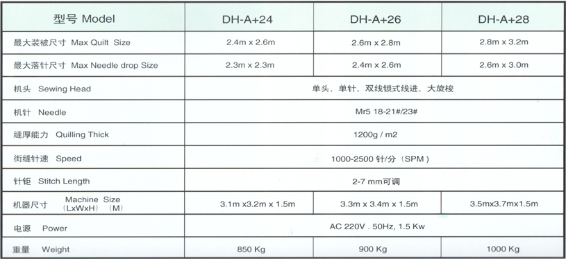 DH-A+型電腦絎縫機是三元公司精心設計和打造的一款新機型。快速、高效、高性價比是其核心;全新設計的控制系統(tǒng)使操作得心應手;交流伺服技術的使用和全新的結構設計,保證了質量,提高了可靠性;新的加油裝置保證了機器高速運轉并延長了使用壽命。